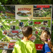 Mehrere Spielplätze und ein überdachter Spielbereich mit Spielmöglichkeiten für alle Altersgruppen lassen Kinderherzen höher schlagen. Die Erwachsenen entspannen auf den Liegestühlen am Teich, auf dem ein Floß auf Entdecker wartet. Abgerundet wird das Angebot von einem Hofschank. Der Besuch des Reierhofs kann mit einer Wanderung über den Gsieser Talblickweg verbunden werden.