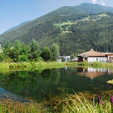 Der Naturbadeteich von Sand in Taufers ist einer der fünf Bereiche der Wellness-Oase Cascade