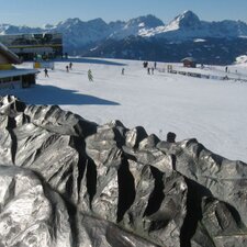 Kurz unterhalb des Gipfels - die Friedensglocke Concordia ist bereits zu hören - wandern wir rechts der Piste empor, bis wir den höchsten Punkt erreichen. Am 2.275 m hohen Kronplatz erwarten uns verschiedene Einkehrmöglichkeiten, sogar die Sonne zeigt sich noch. Nach einer kräftigen Stärkung stehen uns für die Abfahrt nach Reischach die Sylvester- und Herrnegg-Piste zur Verfügung. Wir mischen uns unter die Skifahrer und wedeln zurück ins Tal.