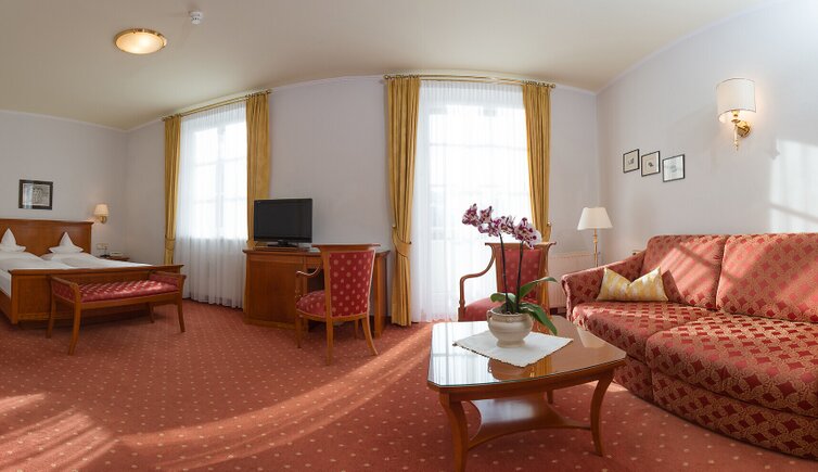 Die stilvoll und elegant eingerichteten Zimmer und Suiten bieten höchsten Komfort. In der großzügigen Wellness-Oase mit Schwimmbad, Whirlpools, Saunen, kühlem Tauchbecken, Kneippbecken und verschiedenen Behandlungen können Sie sich erholen und dem Alltag entfliehen.
