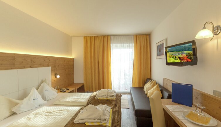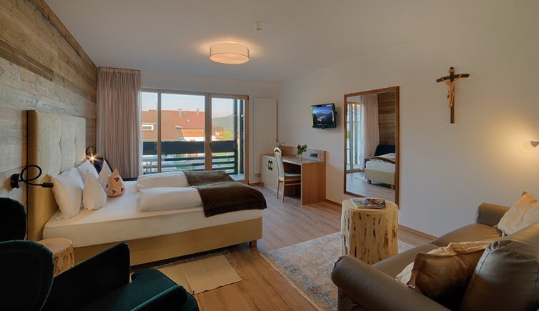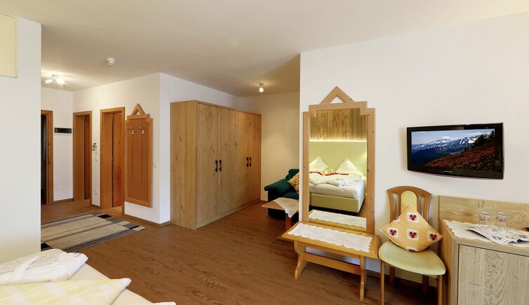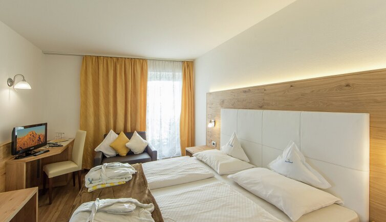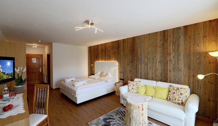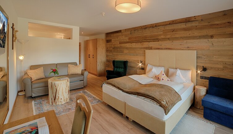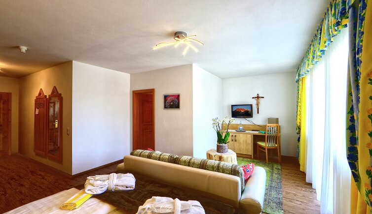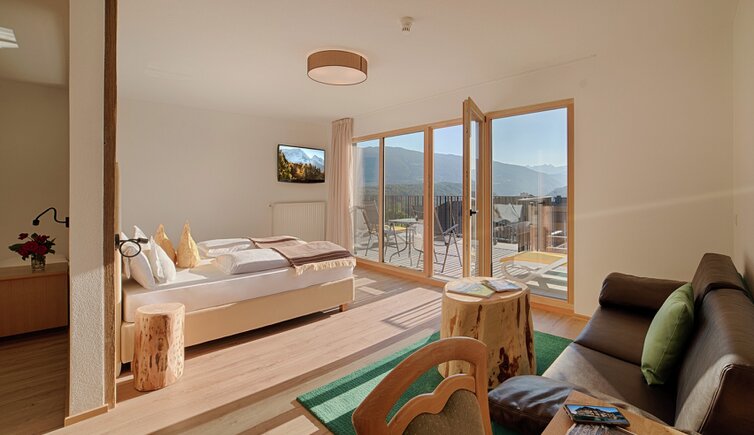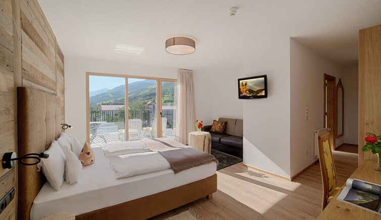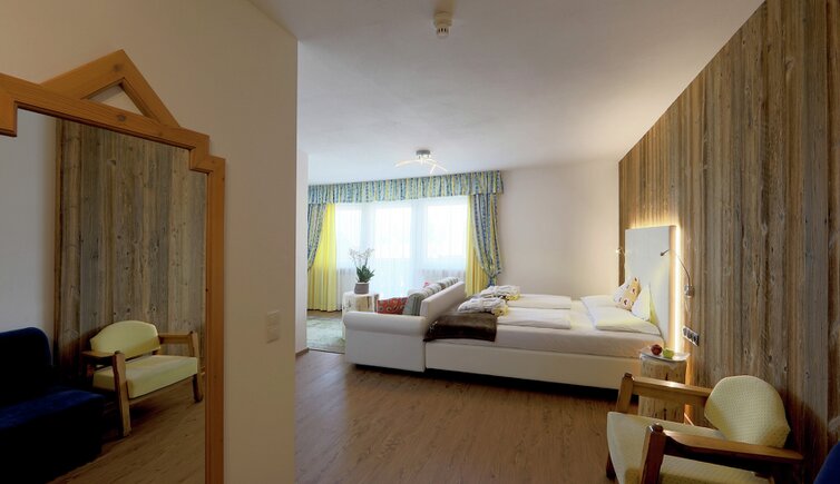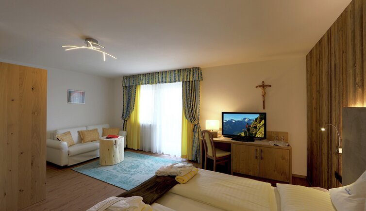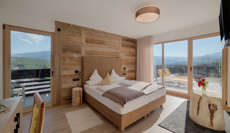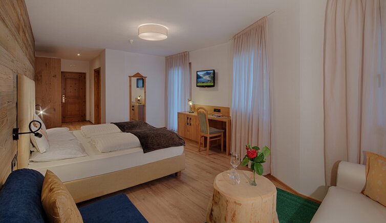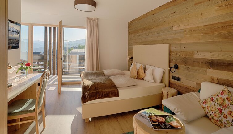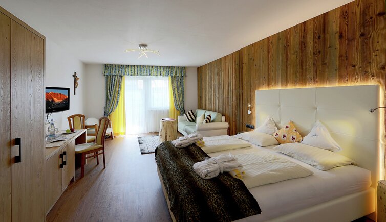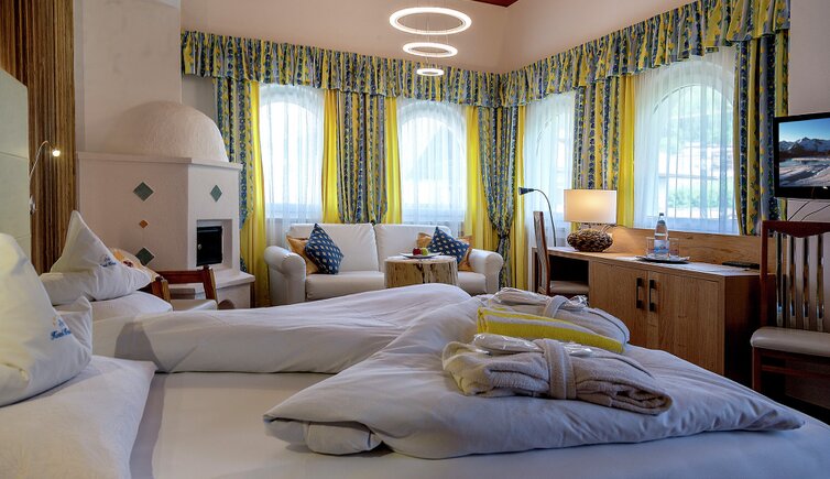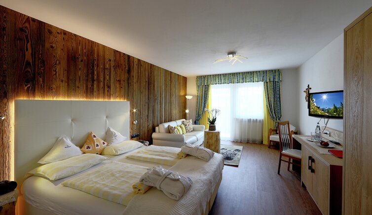 Komfort-Zimmer, Superior-Suiten und exklusive Panoramasuiten mit atemberaubendem Ausblick auf die Dolomiten