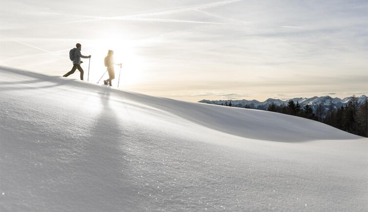 Winterwanderung in verträumter Schneelandschaft, durch tief verschneite Hochwälder und über weite weiße Almwiesen. Das Gehen mit Schneeschuhen ist so einfach wie das Wandern im Sommer.