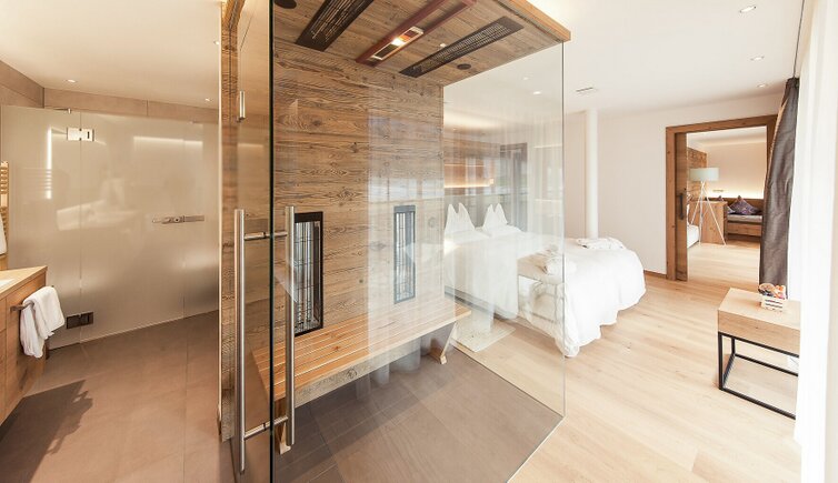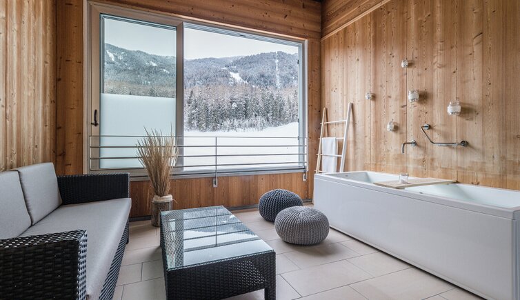 - Zum Schwitzen und Wohlfühlen: Waldsauna (80°C), Stadlsauna (90°C), Fiori-Bio-Sauna (65°C), Sole-Dampfbad mit Bergsalz, Familien-Textilsauna (im Poolbereich)