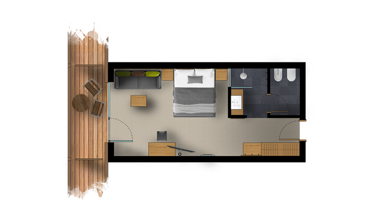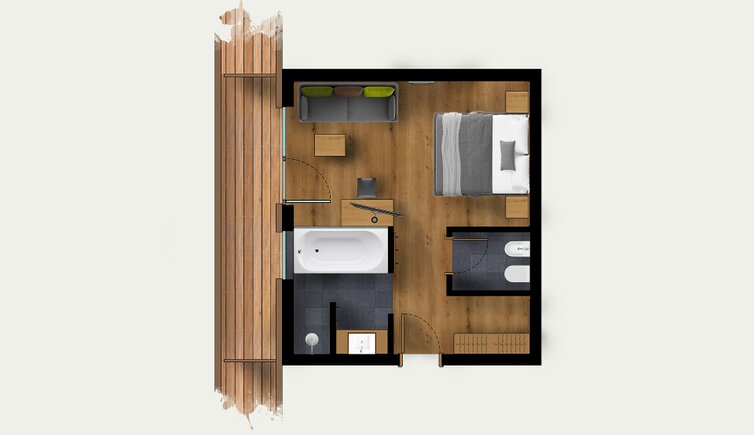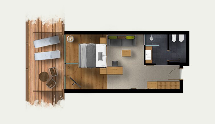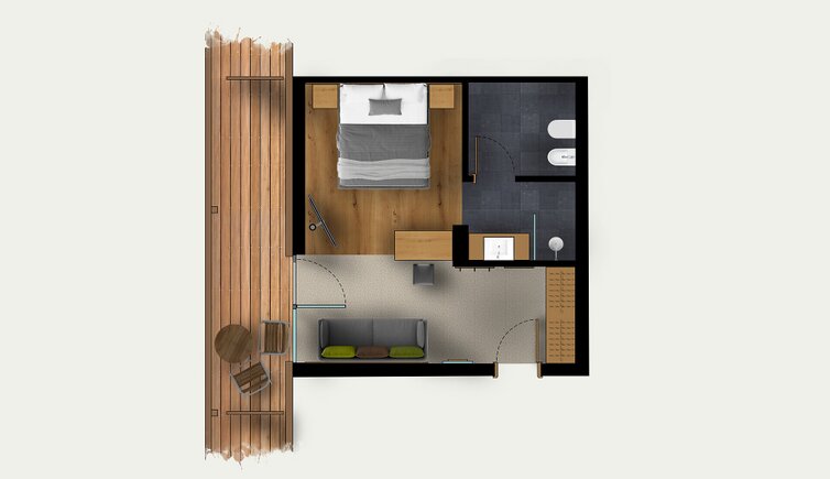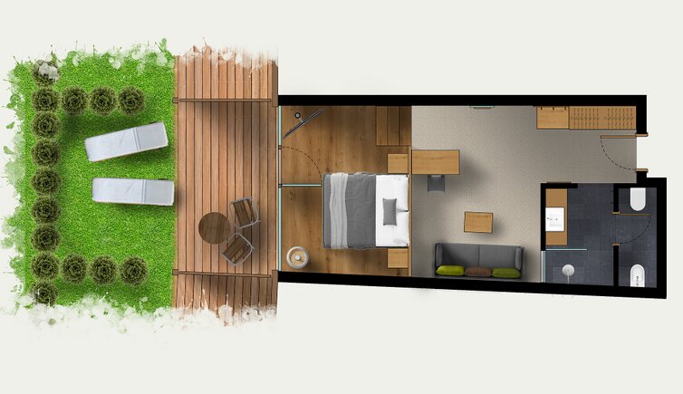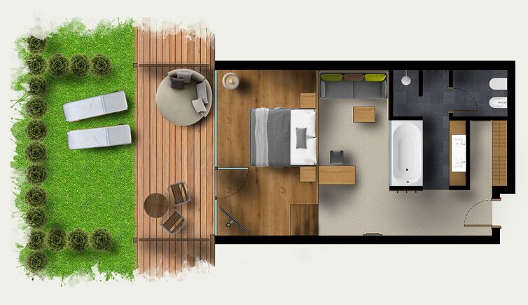 Das spiegelt sich auch in den sehr sonnigen Zimmern wider, die über eine eigene Panoramaterrasse verfügen.