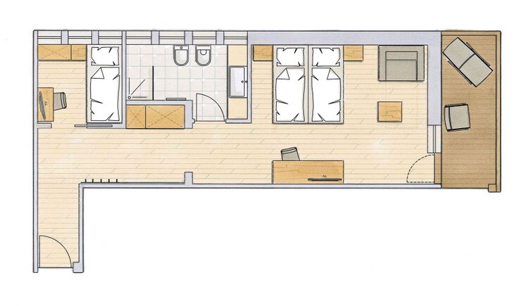 Nicht nur mit seiner Lage, sondern auch mit den stilvoll und gemütlich eingerichteten Zimmern und Suiten punktet das Hotel Scherer.