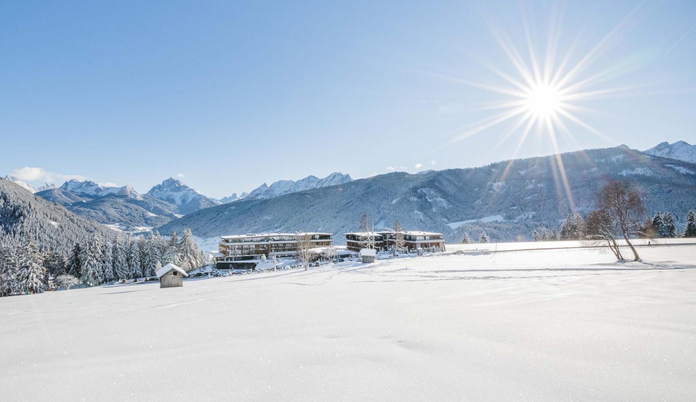 Das Alpen Tesitin liegt auf einem ruhigen, einzigartigen und sonnigen Panoramaplateau in den Dolomiten/Südtirol in Welsberg Taisten im schönen Pustertal.