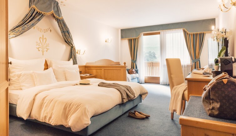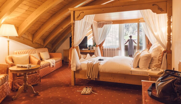 Sich wohlfühlen in den behaglichen Zimmern und Suiten, ausgestattet mit Himmelbett, Kachelofen, Whirlpool, und einer Vielzahl an weiteren Serviceleistungen.