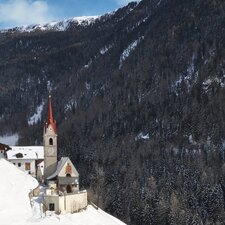 Mühlbach liegt auf 1.400 m Meereshöhe hoch über Uttenheim und hat etwa 50 Einwohner. Verblüffend ist vor allem die Lage dieser Ortschaft - allein die Kirche scheint, als müsse sie sich am steilen Hang festhalten, um nicht ins Tal zu kullern. Die Kuratienkirche von Mühlbach ist den 14 Nothelfern geweiht.