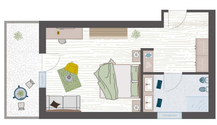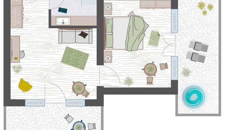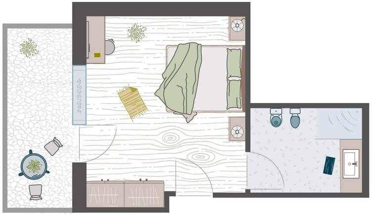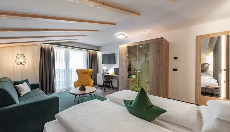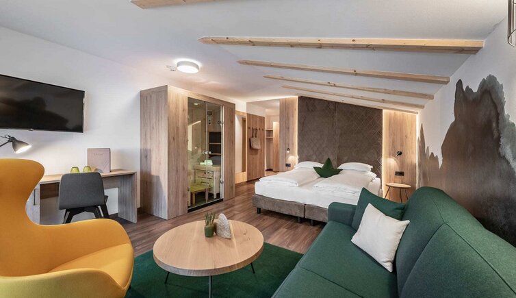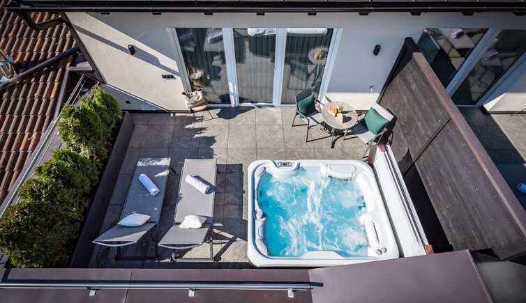 Das Hotel bietet Ihnen großzügige, elegante Doppelzimmer oder romantische, luxuriöse Suiten mit Whirlpool und Panorama-Dachterrasse.