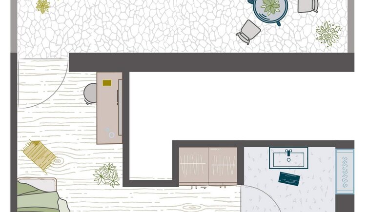 Genießen Sie alpin-mediterranes Flair, umgeben von einem idyllischen Bergpanorama, inmitten saftiger Wiesen.