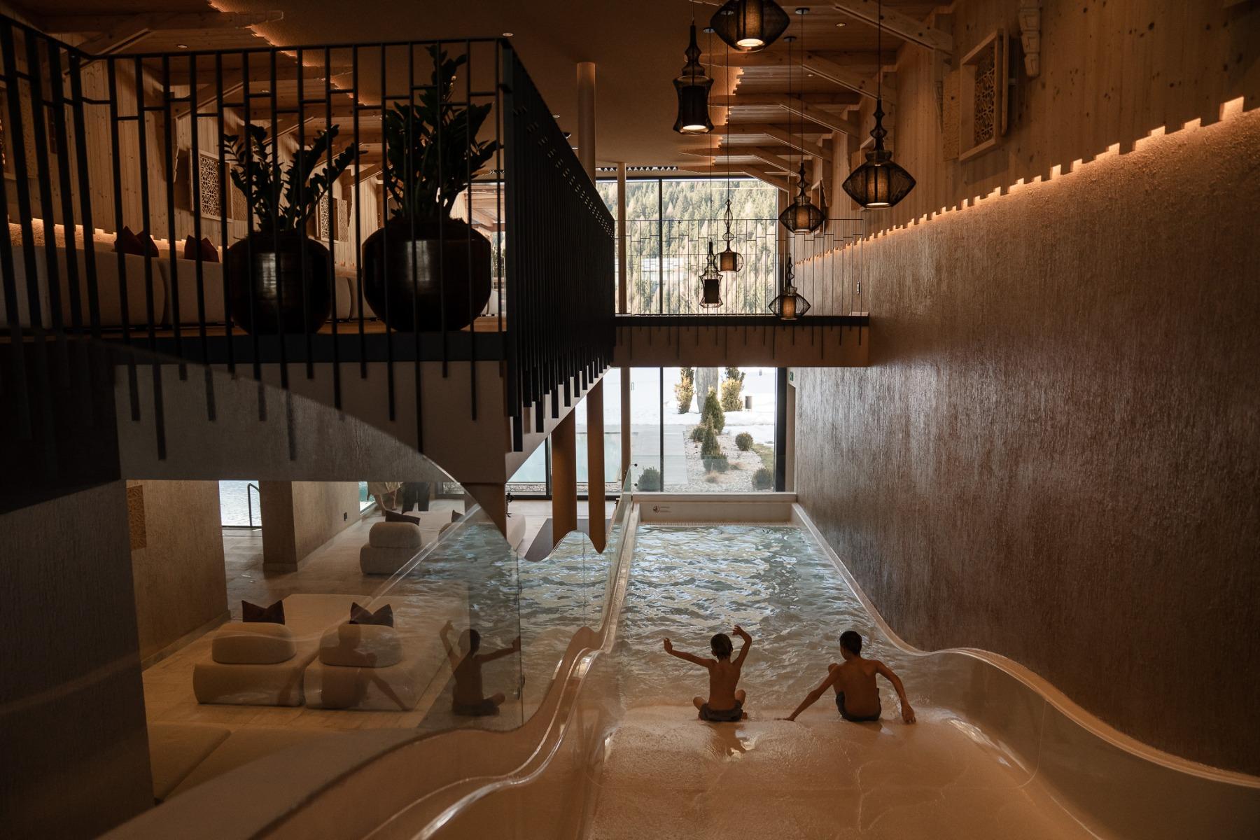 Zwei Wellnesswelten sorgen für individuelle Erholung: Der exklusive Adults-only-Spa (14+) bietet Ruhe und Entspannung mit Pools, Saunen und alpinen Anwendungen. Familien genießen die großzügige Wasserwelt mit Innen- und Außenpool, Rutsche und Kinderbereichen.