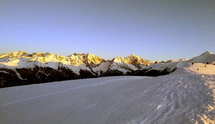 From the hiking car park above the Mudler mountain inn, an easy ascent of about 2 hours leads to the Lutterkopf summit (2145 m). The panoramic views extend from the Sesto Dolomites in the south to the Ortler and the Rieserferner Group in the north. The route continues across open terrain and descends via the Taistner Alm hut back to the starting point. Ambitious hikers can optionally include the Durakopf (2275 m), adding around one extra hour. Refreshment stop available.