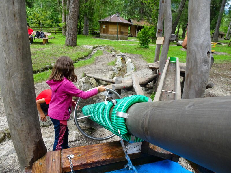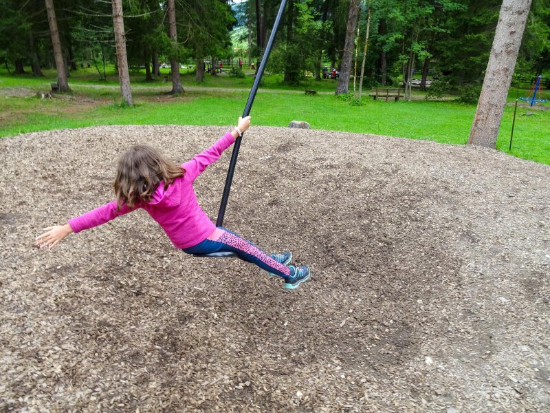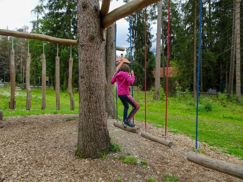 The recently renovated playground in the “Grieswaldile” in Dobbiaco is one of the largest playgrounds in South Tyrol