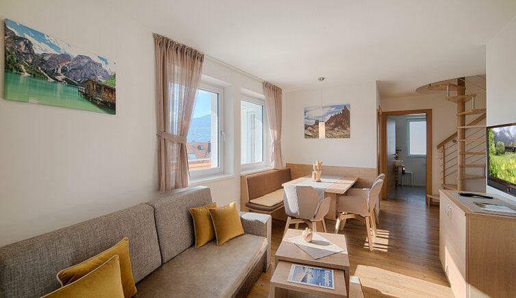 Our apartment house Andreas is located slightly above the village centre (approx. 300 m far away) in close vicinity to the ski runs and lift facilities of Riscone in the Plan de Corones/Dolomiti Superski Skiing Area.