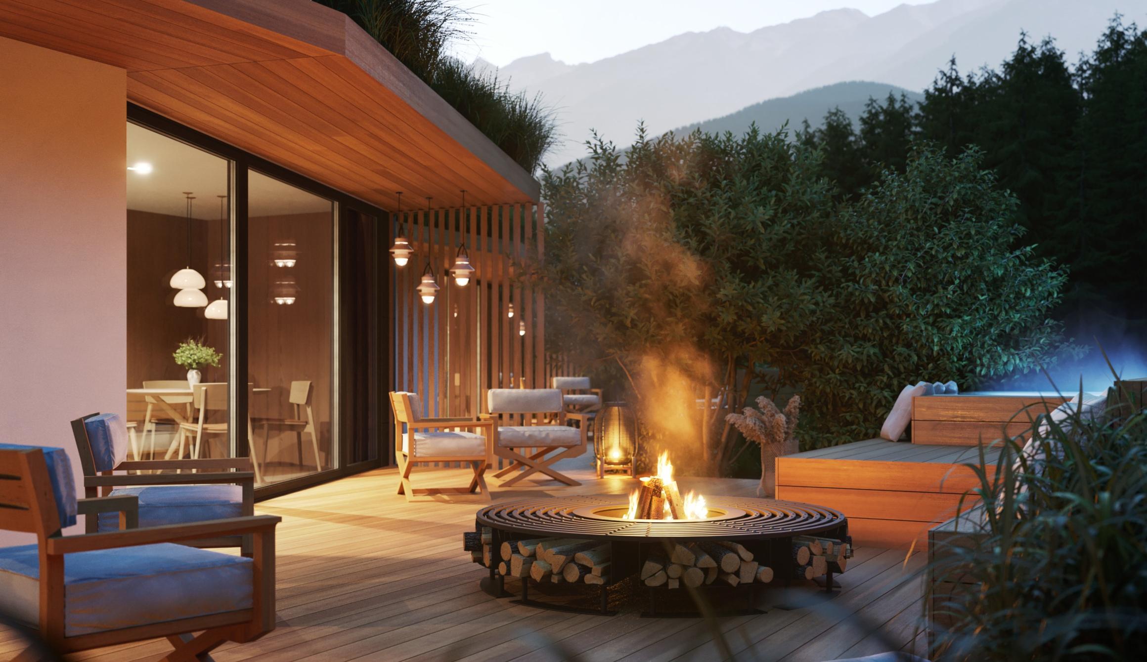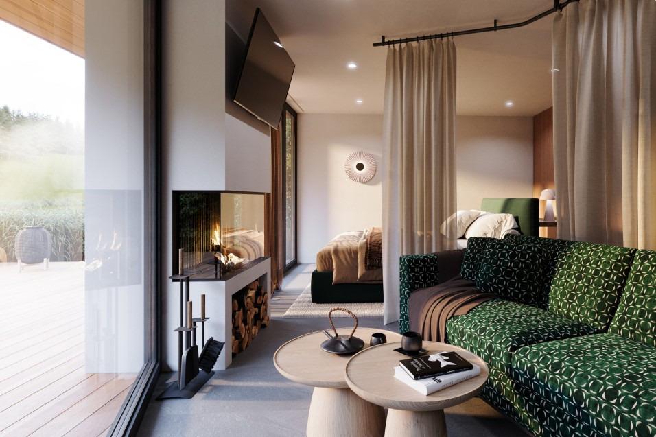 19 freshly updated holiday apartments – cosy chalets with a jacuzzi and an open fire pit for two people, and authentic Canadian log cabins for two to six people.