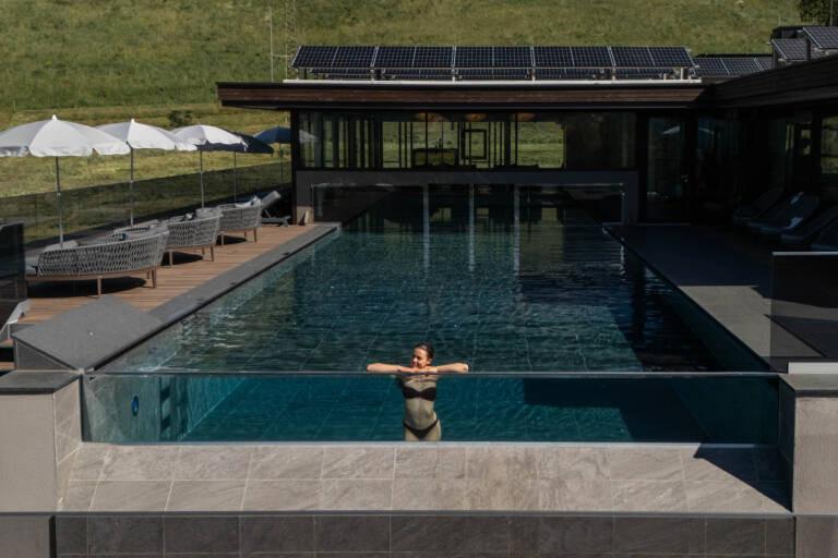 The "Torrentes" wellness area, which is on four floors, includes an adults-only area, a bio sauna, a steam bath, the event sauna with plunge pool, an outdoor area and yoga platform, an indoor and outdoor pool with relaxation room, two massage rooms and the Sunrise whirlpool.