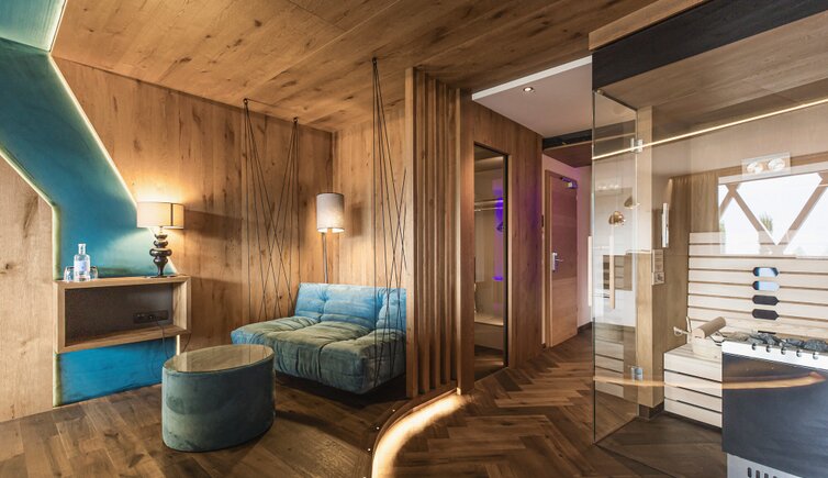 Each room is a cosy design dream in special colours and with highlights, some suites have their own sauna or stylish hanging loungers or infrared chairs.