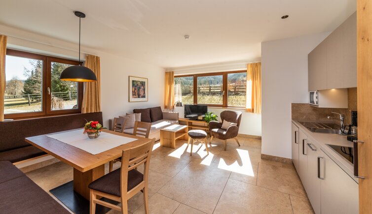 The accommodation is only 300 metres from the adjoining Hotel Post, where you can book breakfast and dinner if desired. Or you can spontaneously enjoy an à la carte dinner in the hotel restaurant. The hotel’s wellness area also invites you to relax.