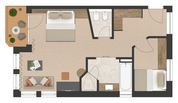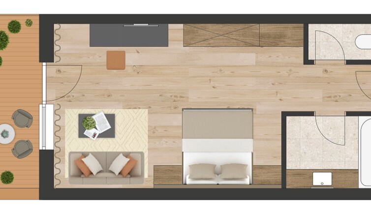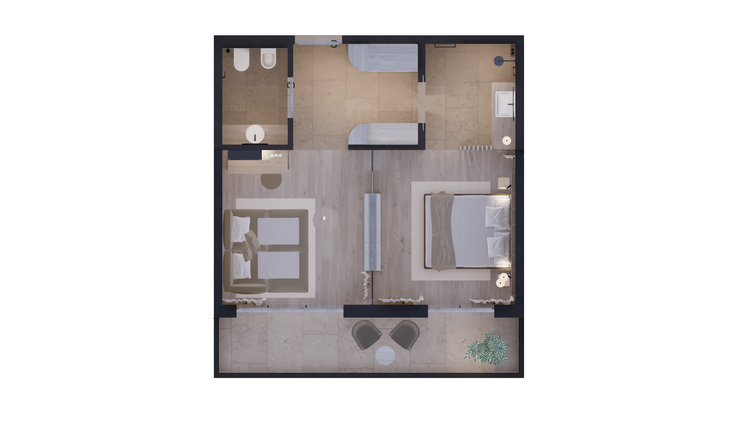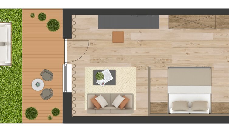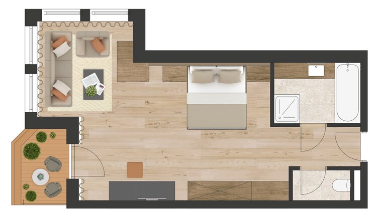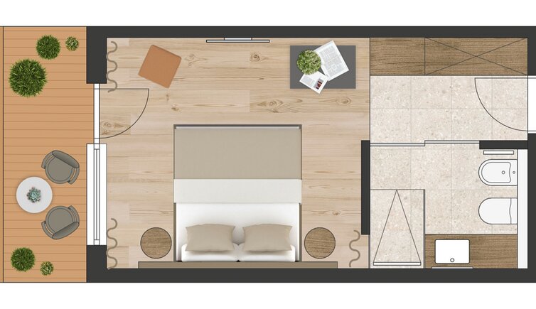 Stay in new, spacious rooms and suites furnished with lots of wood and natural materials.