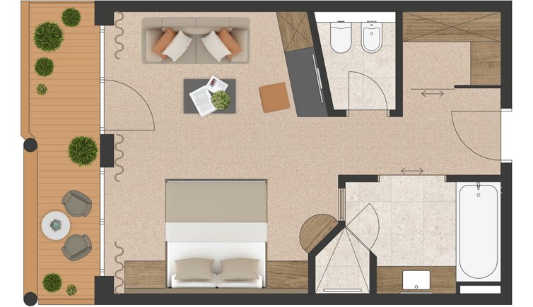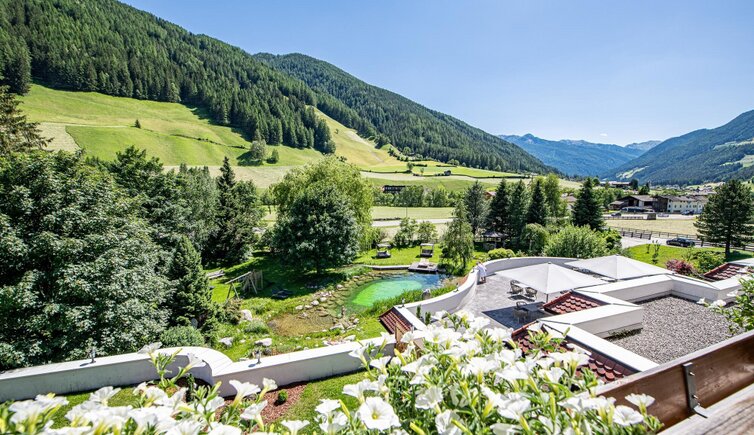 According to the motto "In nature lies peace. In peace lies strength", completely new concepts for holistic well-being have been created here: a refreshing bathing pond, new heated outdoor pool, three saunas with panoramic views, massages and treatments with organic & natural cosmetics.